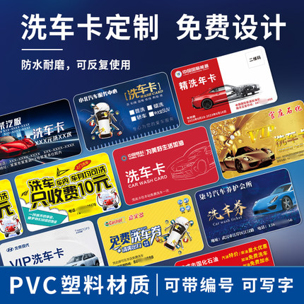 洗车卡定制高档PVC塑料防水打孔免费洗车卡定做加油站洗车券汽修