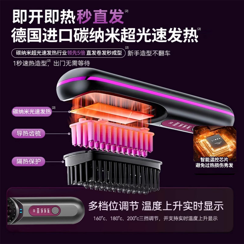 无线直发梳负离子不伤发便携直卷发棒两用直板夹电梳子高颅顶神器