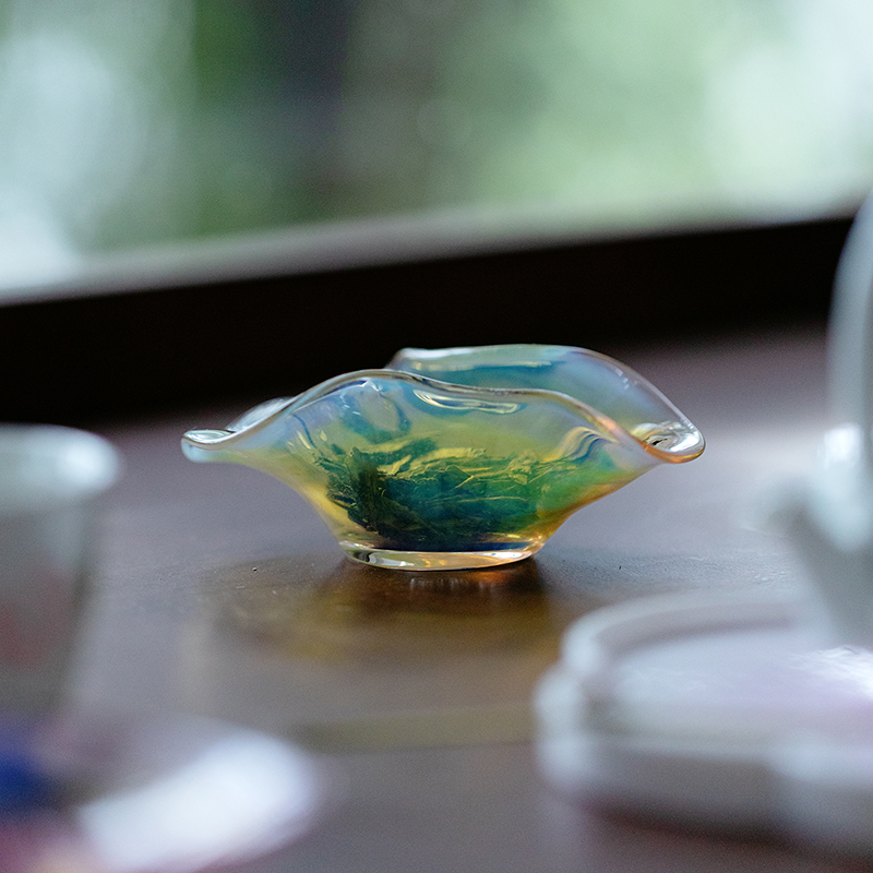 梵汝 水晶玻璃耐热玻璃水晶欧珀色卷叶水晶茶则功夫茶具茶道配件