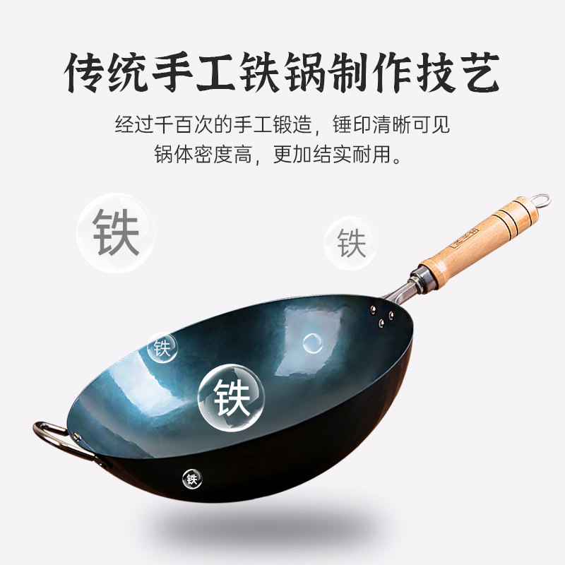 陈枝记铁锅熟铁炒锅家用无涂层老式炒菜锅不易粘燃气灶专用已开锅