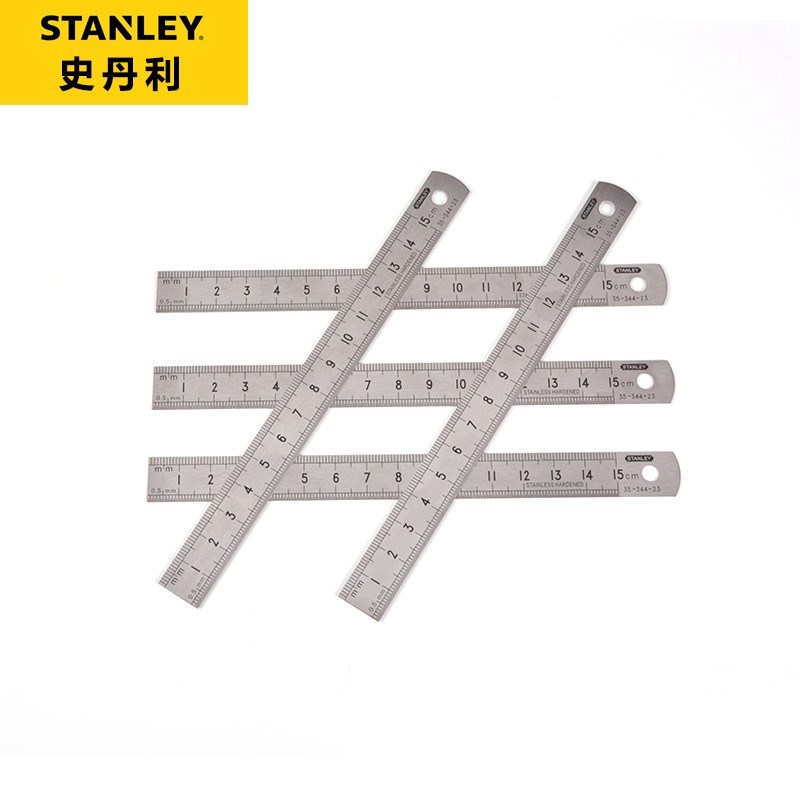 史丹利不锈钢双面直尺直角尺子加厚公制英制高精度金属尺子测径尺