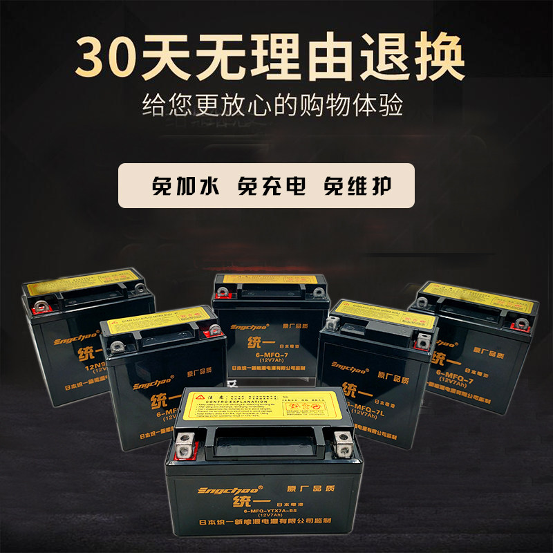 统一摩托车电瓶12N9A 三轮车12V免维护干蓄电池跨骑太子车 通用