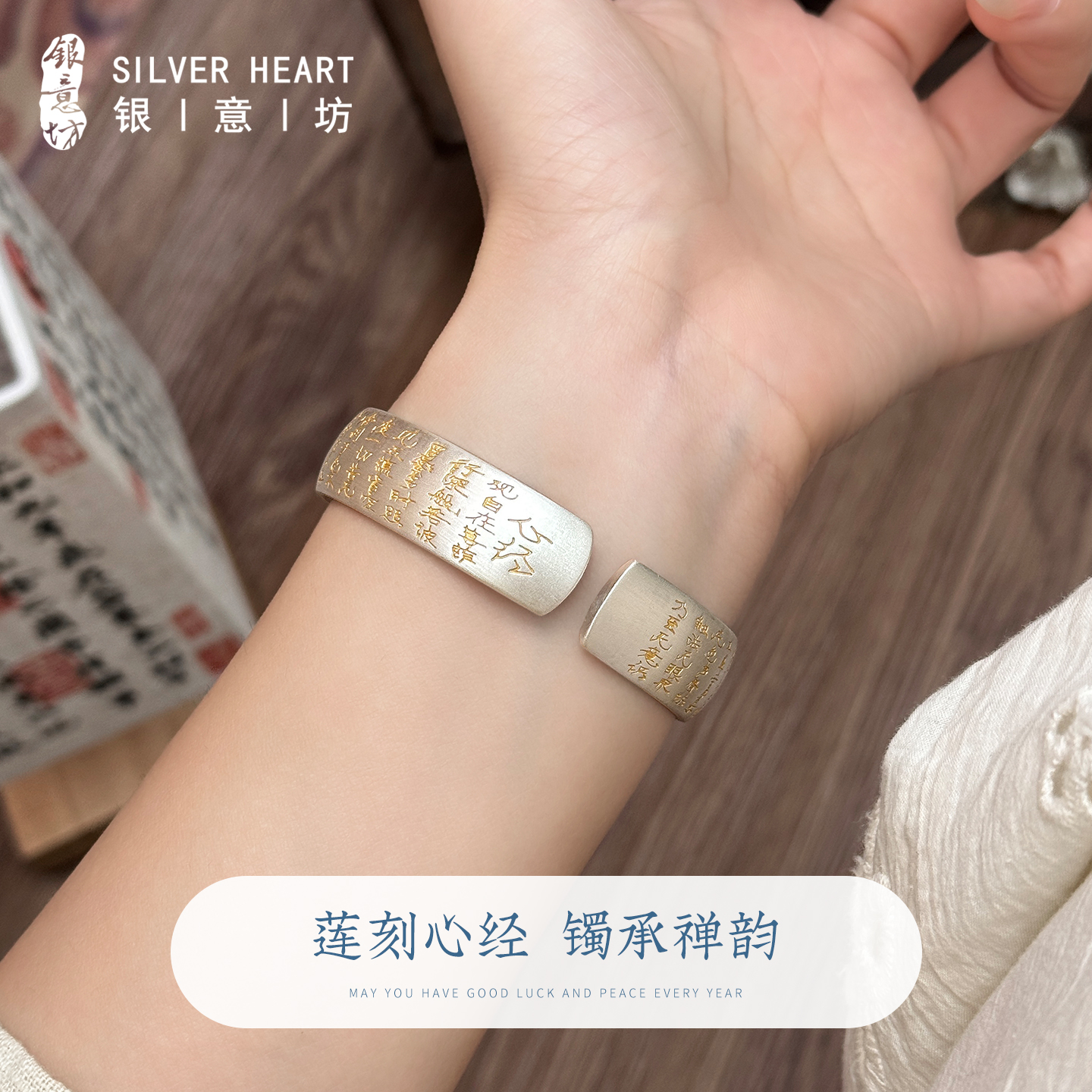 莲花心经银手镯妈妈款9999纯银镯子描金大克重实心款女款2025新款