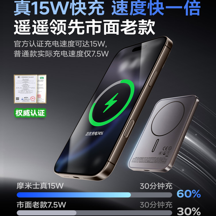 3C认证MOMAX摩米士Qi2磁吸充电宝无线快充超薄苹果17移动电源定制