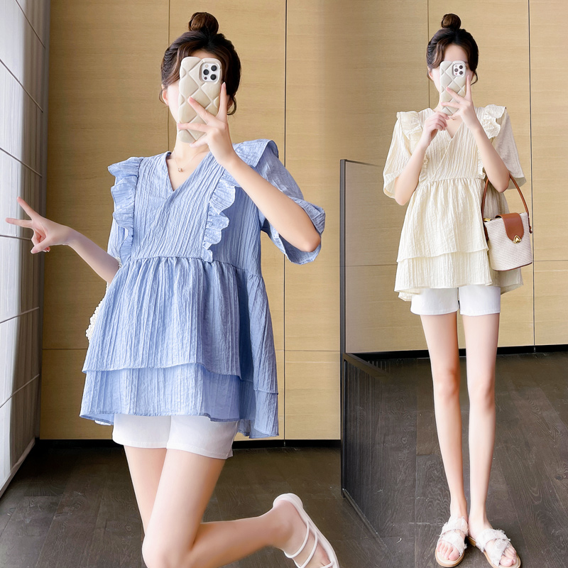 孕妇装套装夏装外出m时尚洋气孕妇t恤夏季娃娃衫上衣两件套女夏天