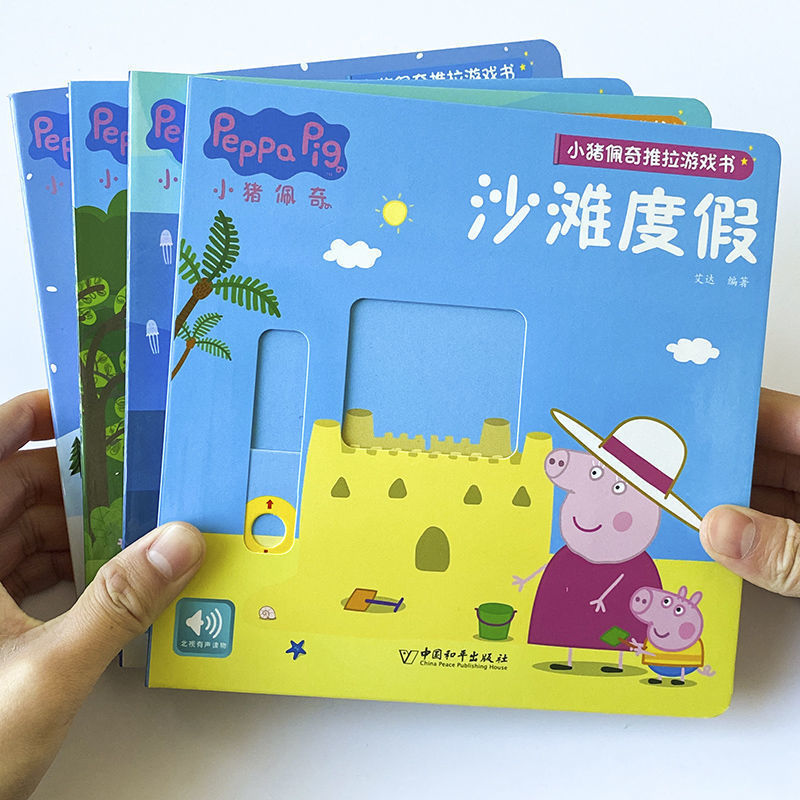 小猪佩奇推拉书全套四册0-1-2-3岁宝宝认知启蒙绘本一岁两岁动手脑小熊很忙同款撕不烂3d立体游戏机关书游戏益智早教玩具故事书