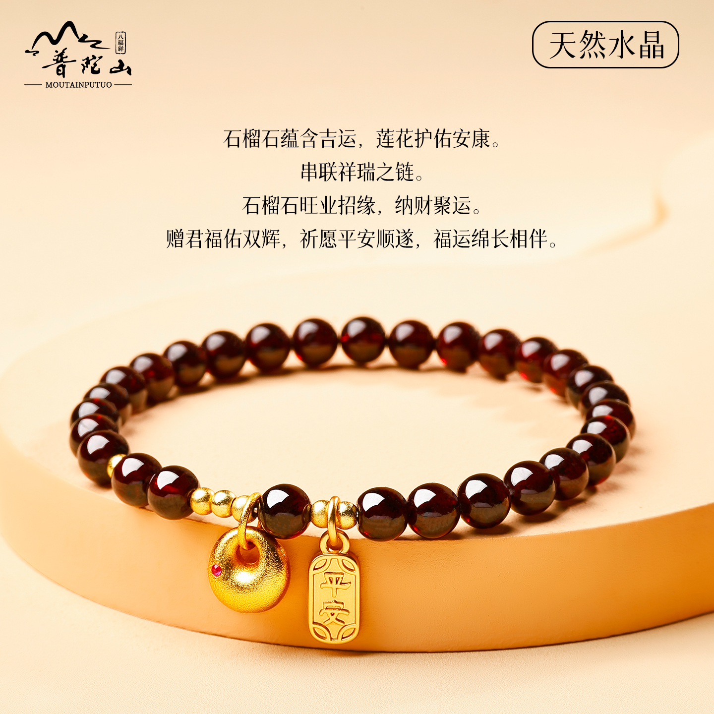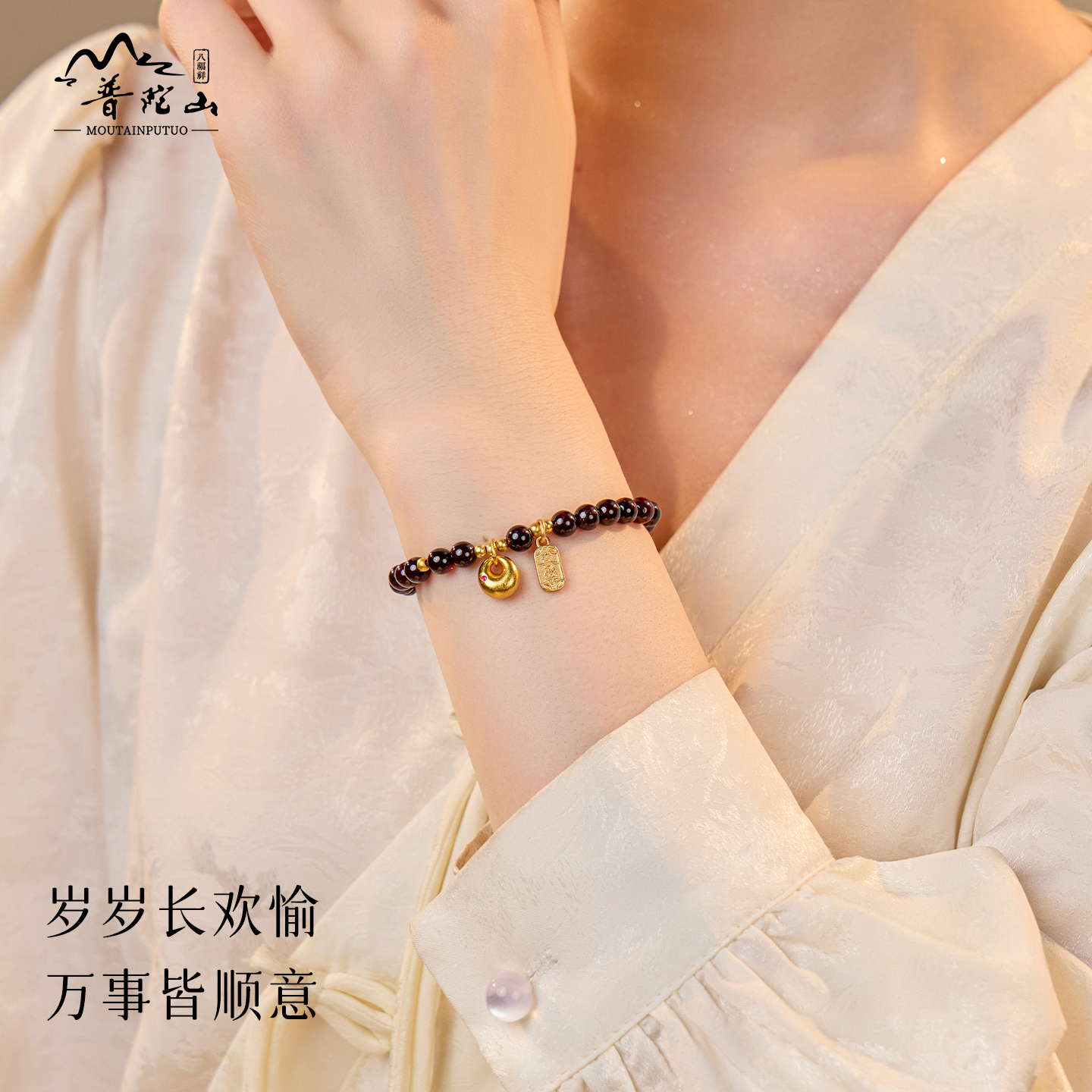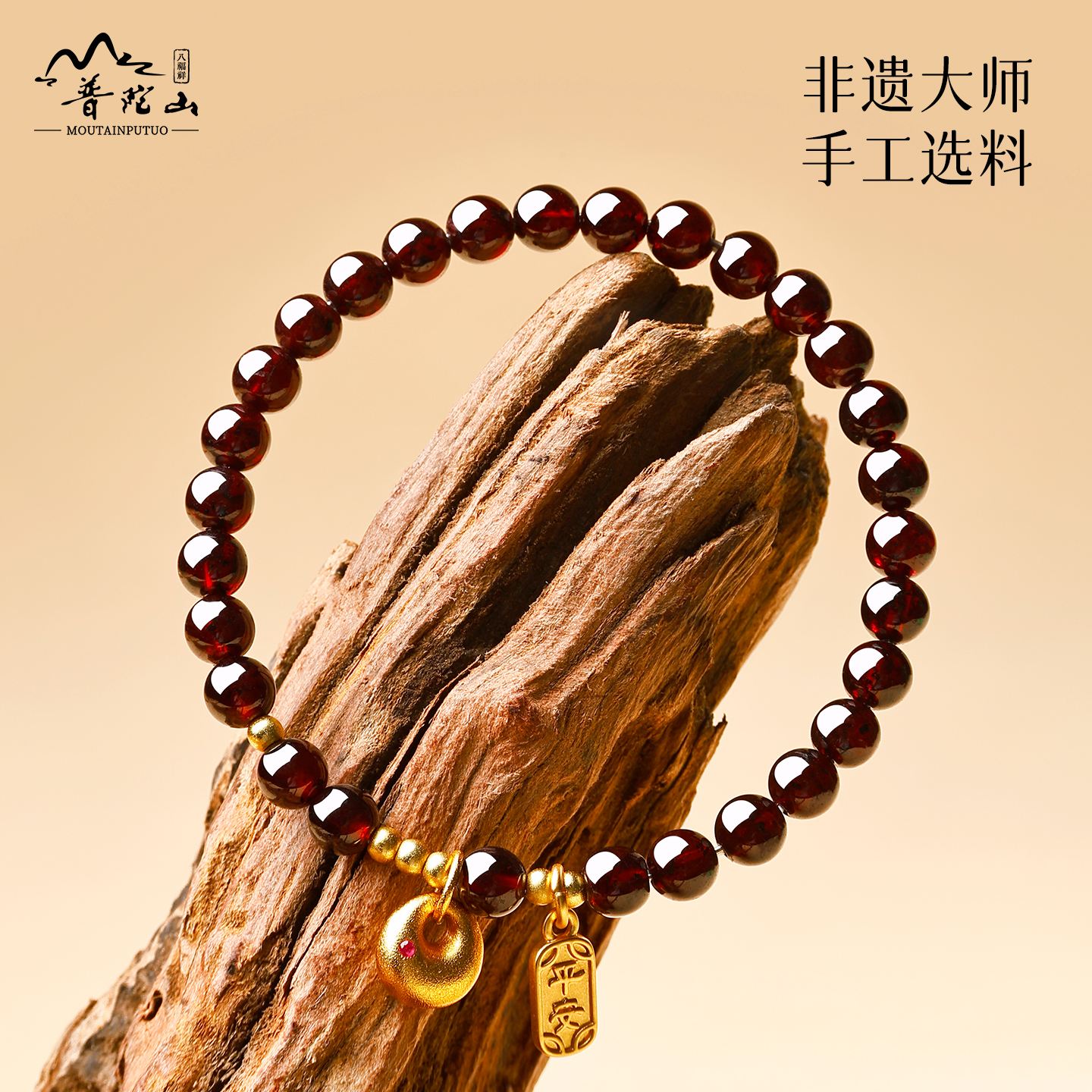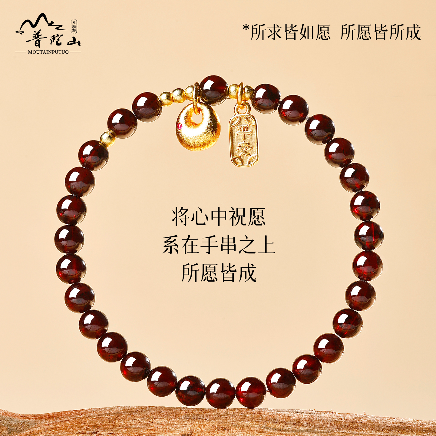 普陀山官方旗舰店石榴石手串女招财转运保平安福牌手链送妈妈礼物