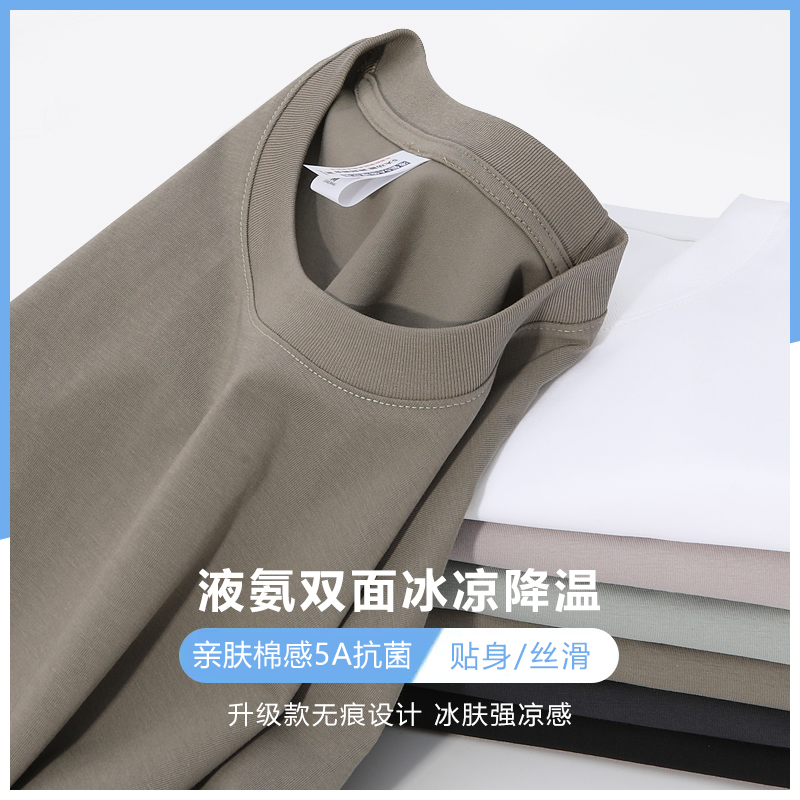 冰丝索罗娜丝光棉t恤男液氨棉夏季短袖凉感纯色圆领抗皱体恤百搭