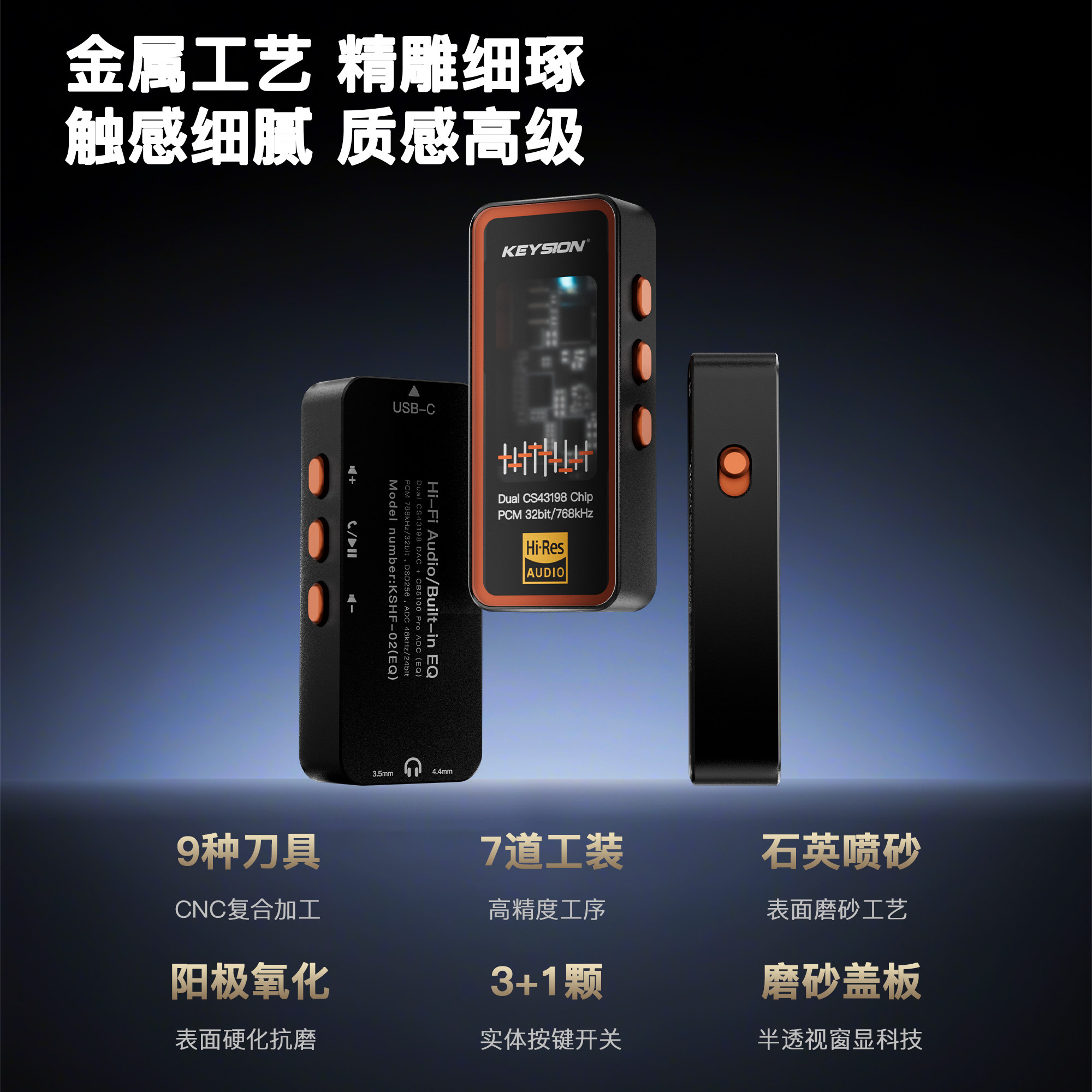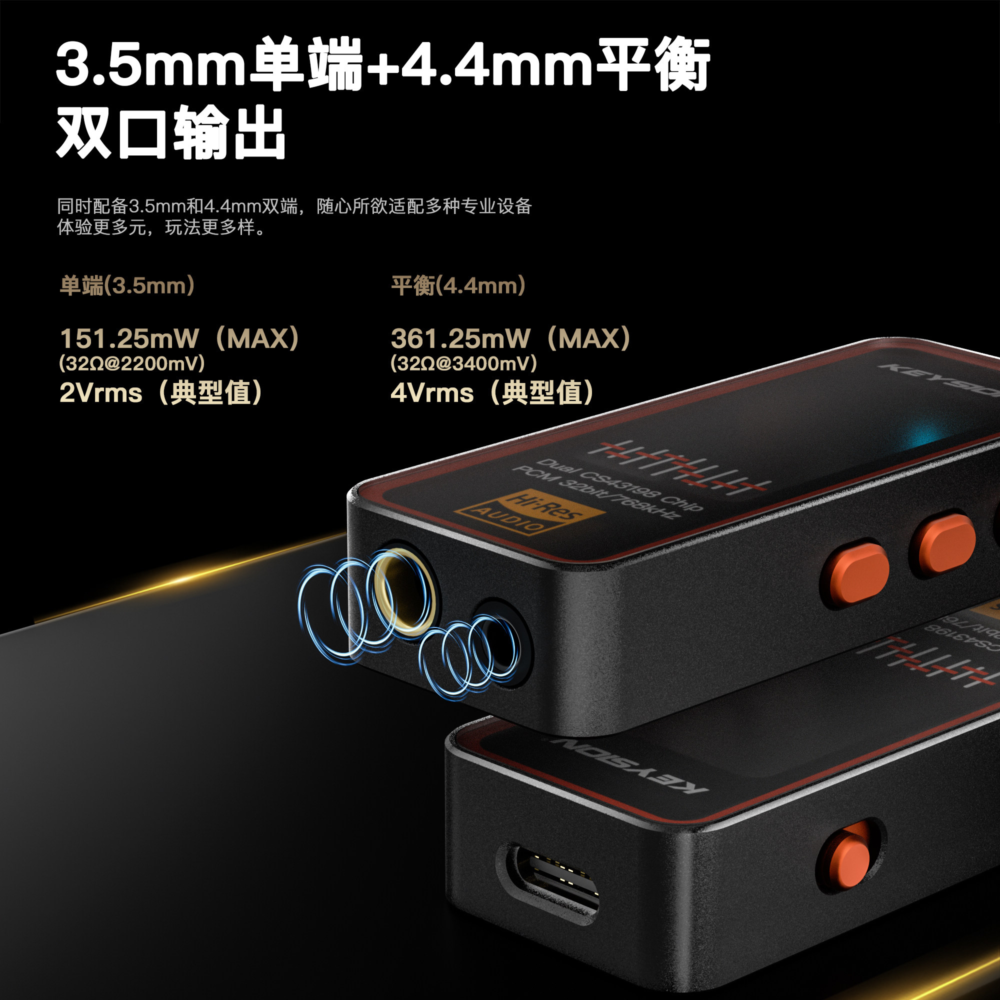 TypeC小尾巴DAC音频解码器768kHz双CS43198发烧无损HIFI耳放声卡
