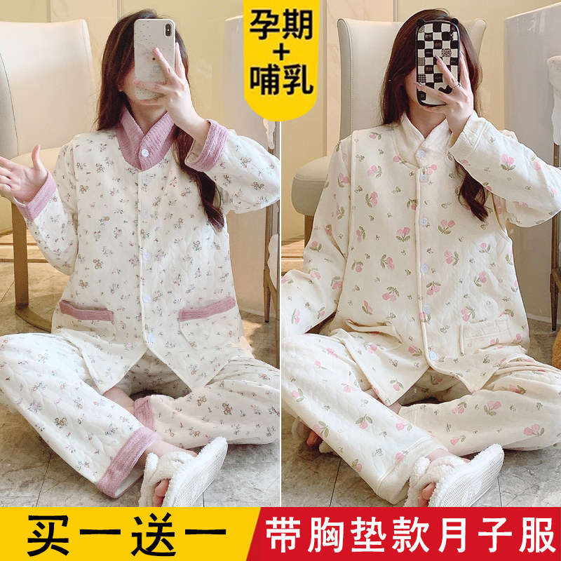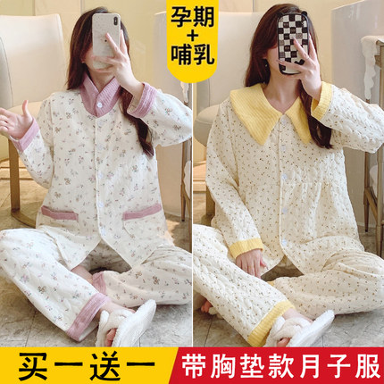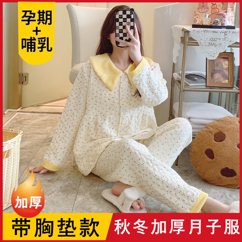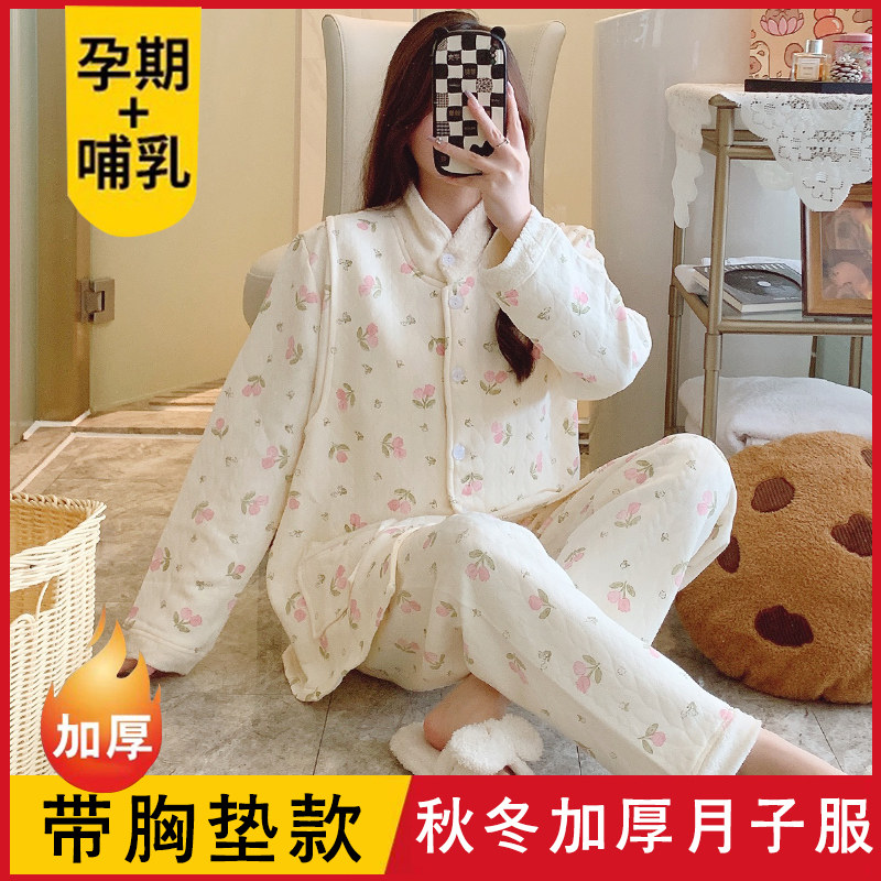 秋冬季带胸垫纯棉空气棉月子服十月份11产后哺乳孕妇睡衣孕期睡衣