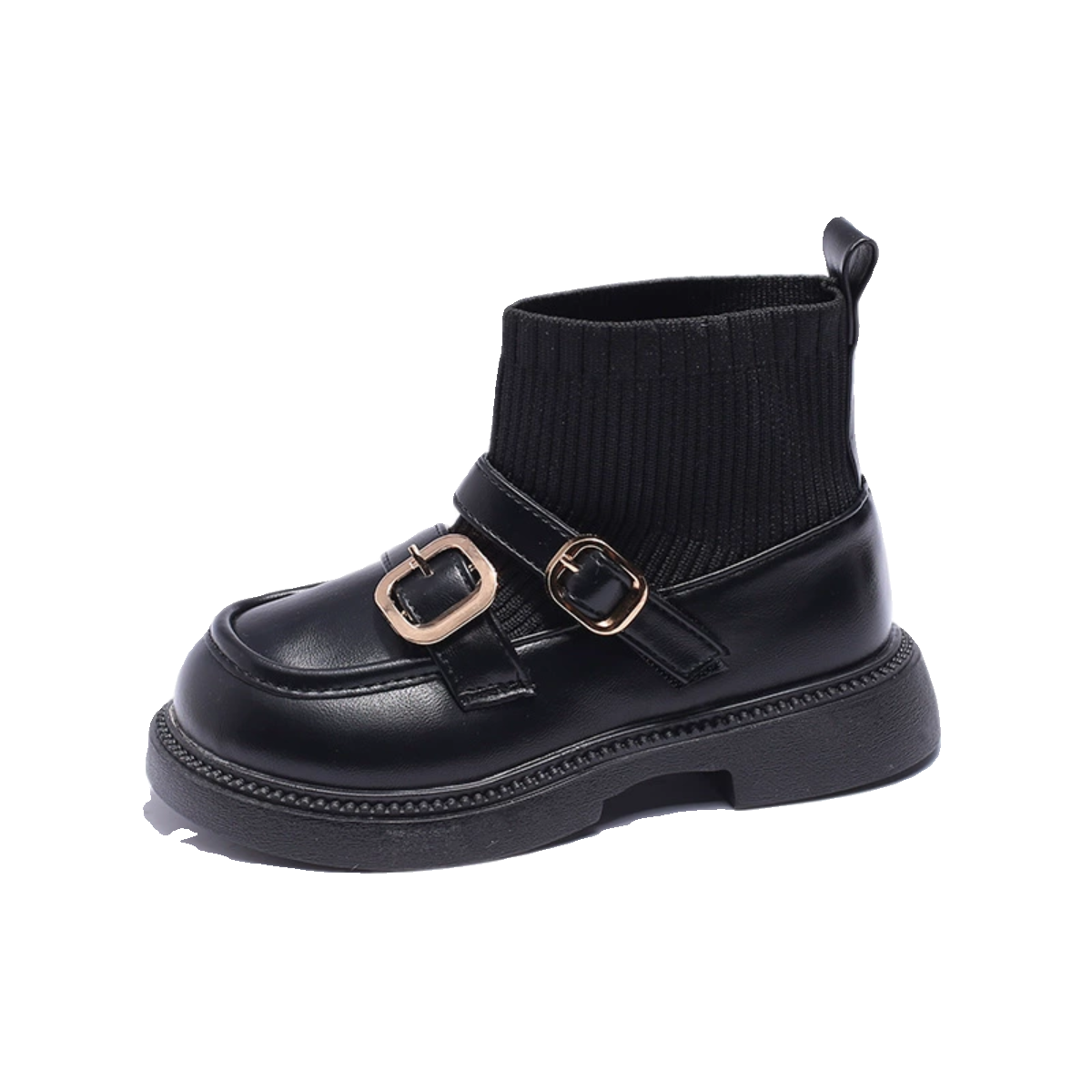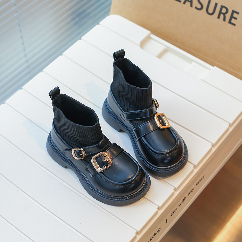 女童袜靴马丁短靴秋冬新款儿童袜口靴小皮鞋洋气小女孩鞋黑色皮鞋