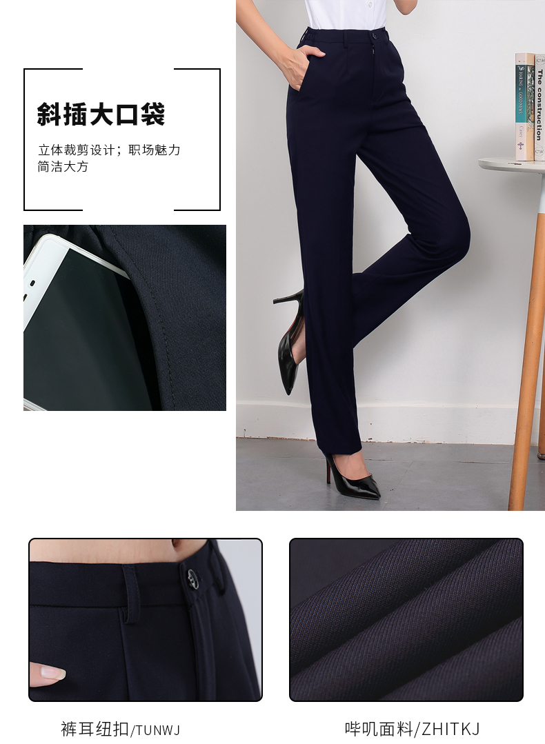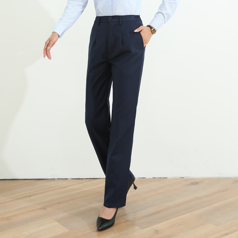 工作西装裤女藏青蓝色直筒职业西装裤加绒工作裤制服行服女西裤冬