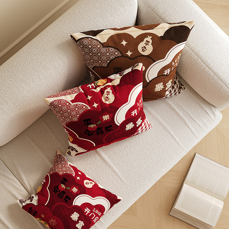 红色抱枕家用沙发客厅靠垫腰靠方形车用床头床上靠枕喜庆含芯抱枕