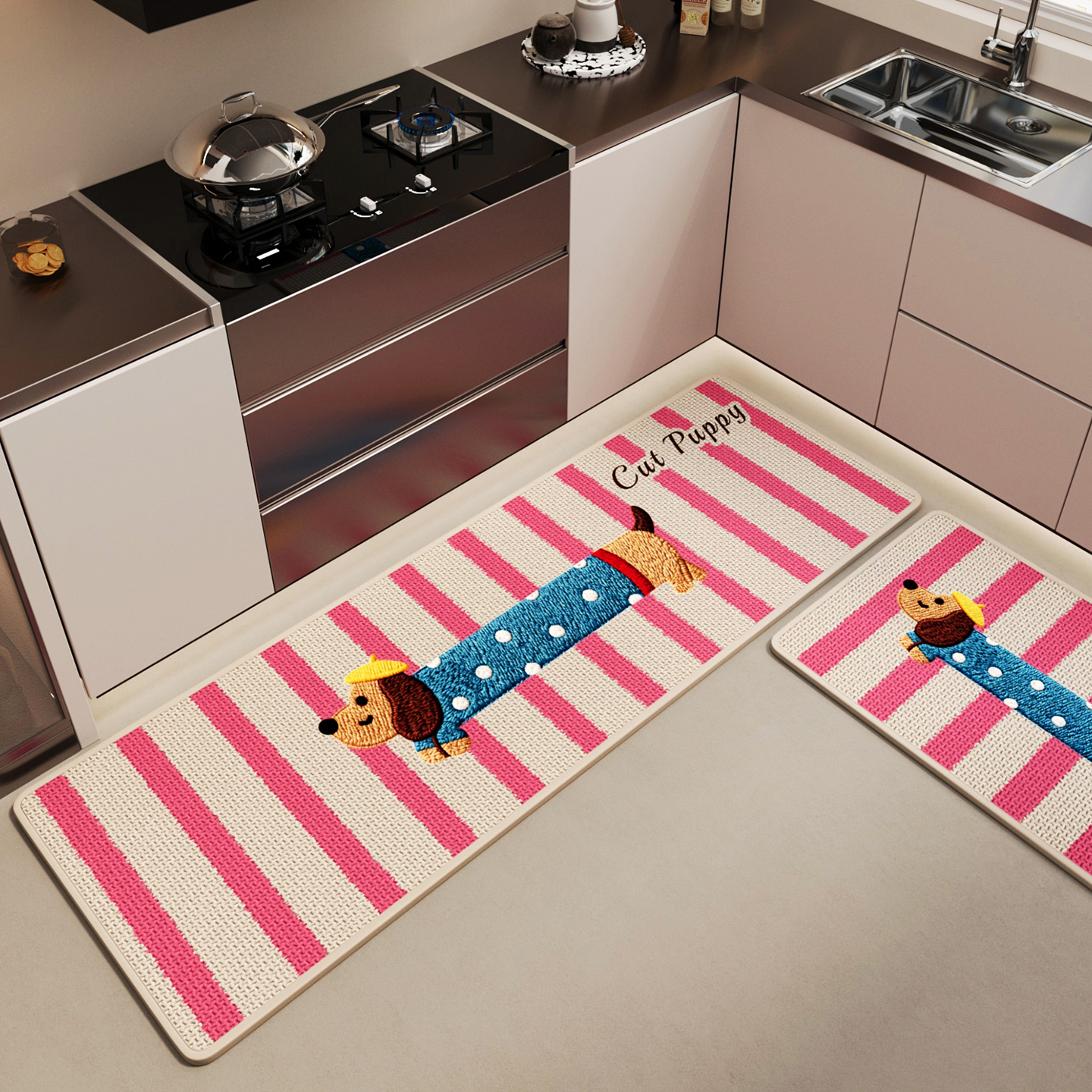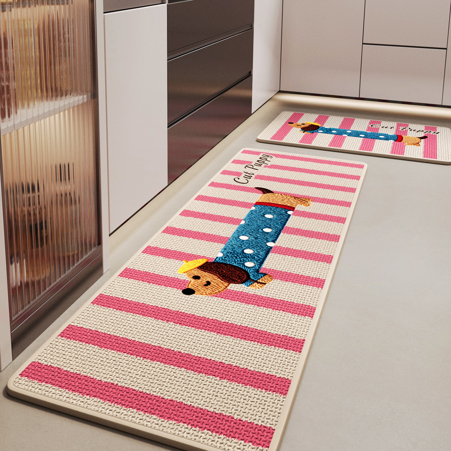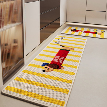 厨房专用地垫仿编织亚麻家用免洗吸水速干擦脚垫子卡通腊肠狗地毯