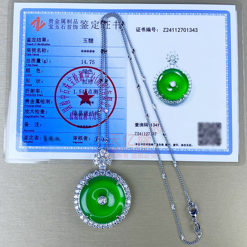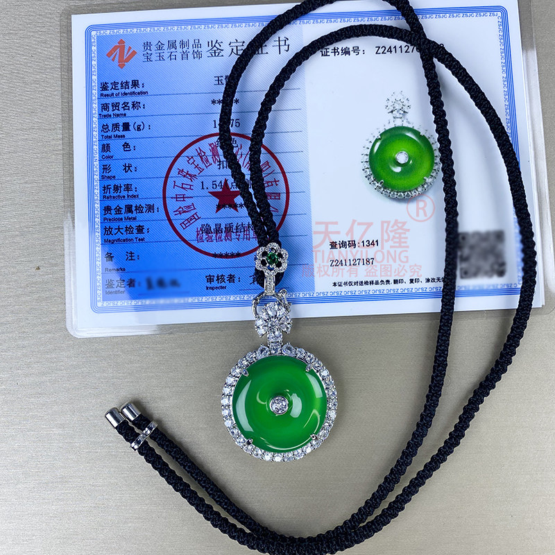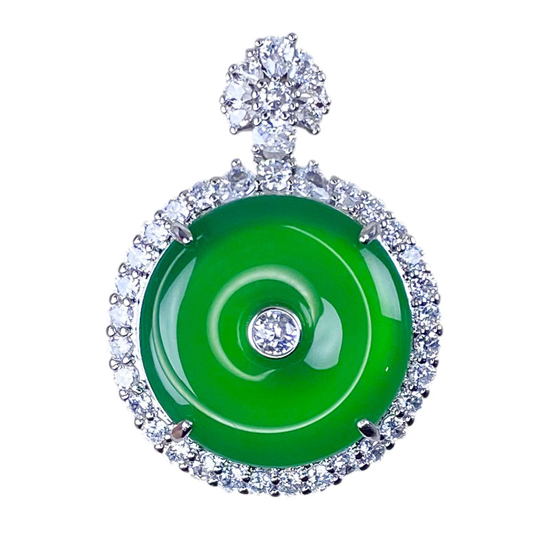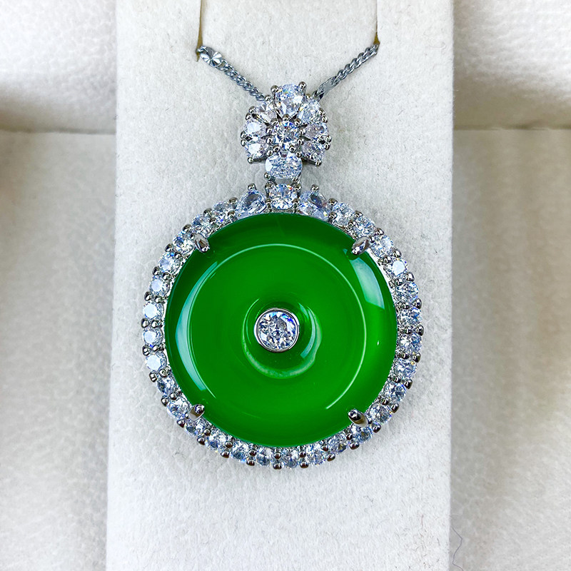 天然冰种玉髓吊坠女款镶嵌宝石翡翠色帝王绿玛瑙平安扣项链子挂件