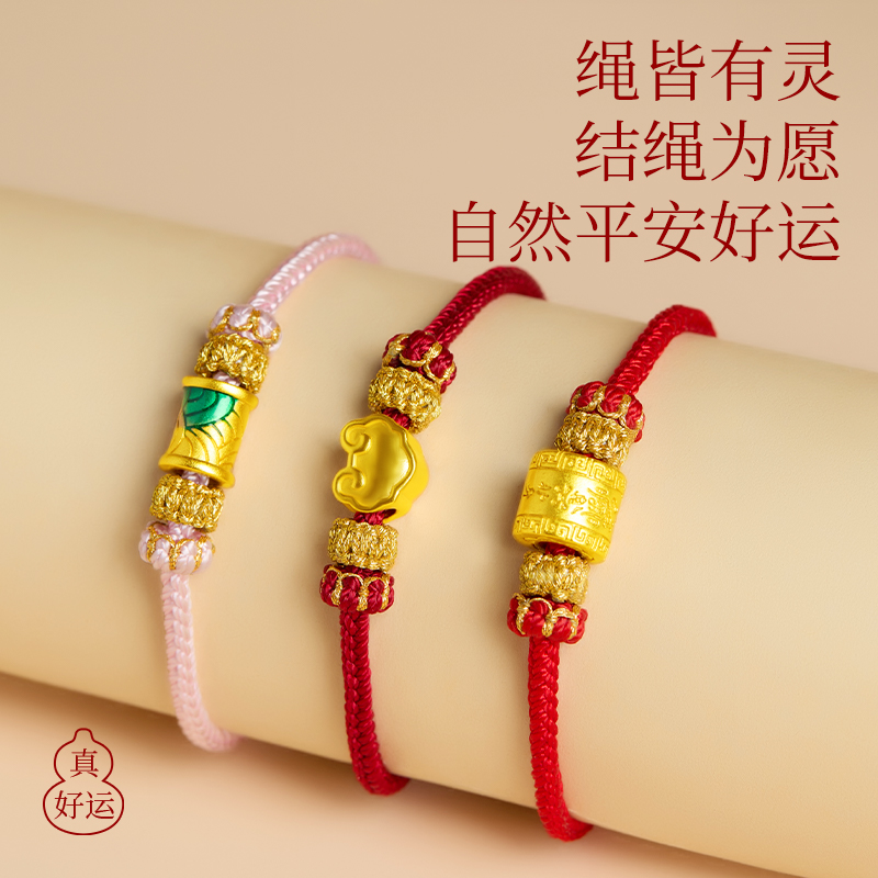 本命年红绳手链女男手工编织绳可穿黄金转运珠手绳编织diy半成品