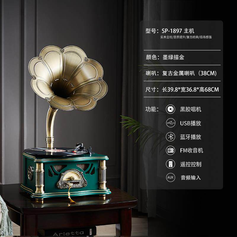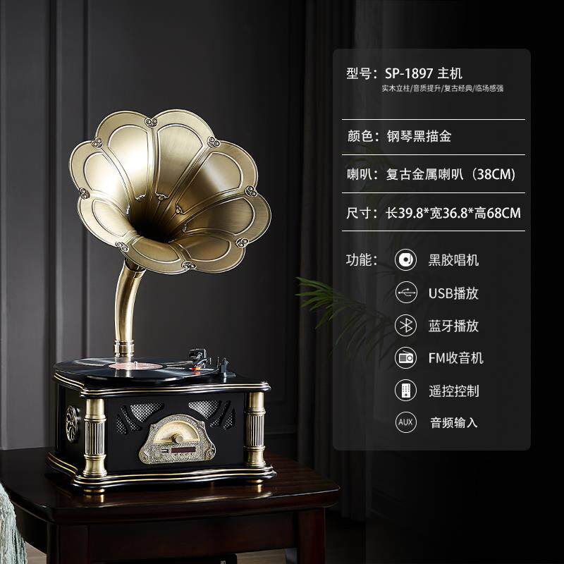 正品留声机复古客厅欧式轻奢老式摆件美音电机蓝唱牙响黑胶式唱片