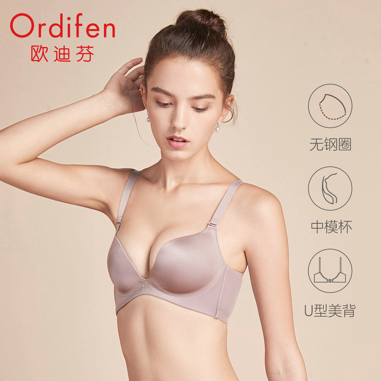 欧迪芬无痕内衣舒适透气无钢圈光面胸罩小胸聚拢美背文胸-官方