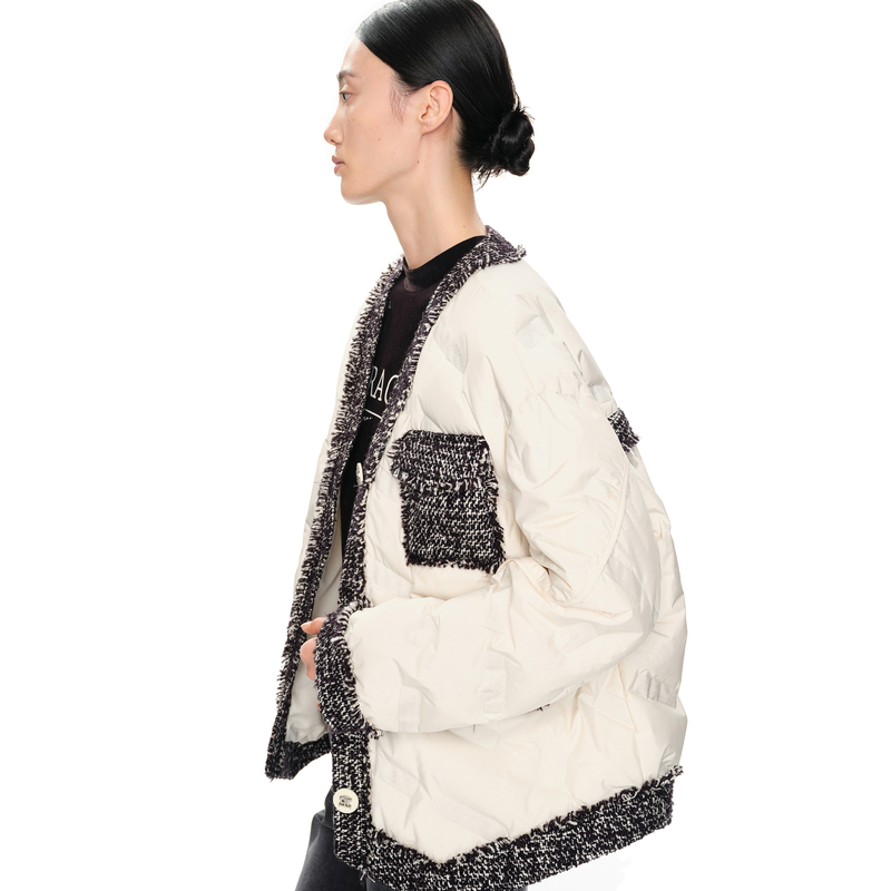 H·GENTEEL荷高新款冬装女拼接黑白拼接轻薄短款白鹅绒羽绒服女