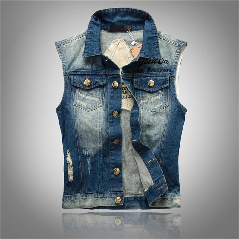 潮流男生牛仔马甲修身背心坎肩破洞马夹无袖外套春秋季加肥加大码