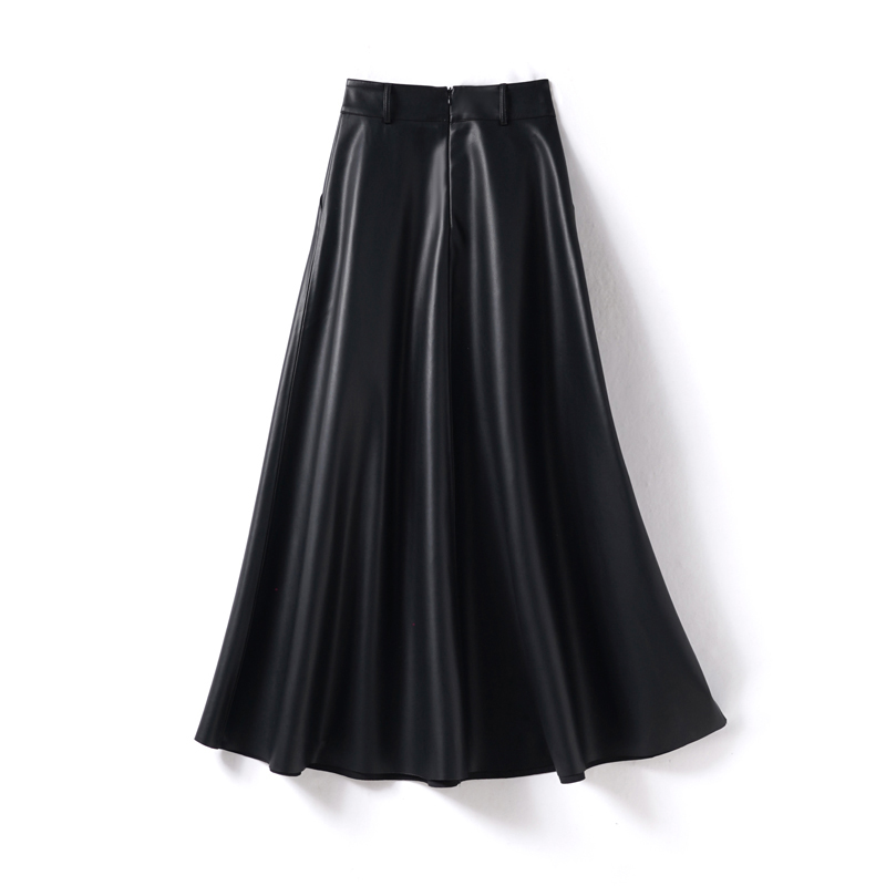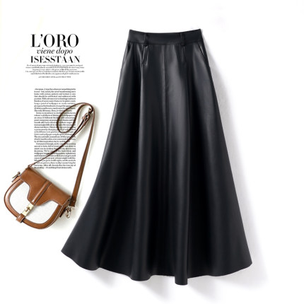 海宁真皮半身裙女士过膝长裙秋季新款高腰显瘦绵羊皮大摆裙a字裙