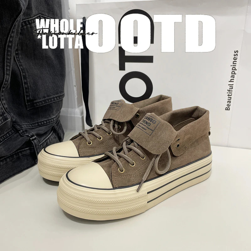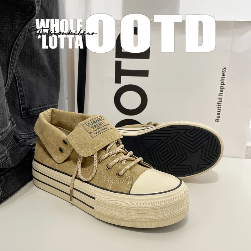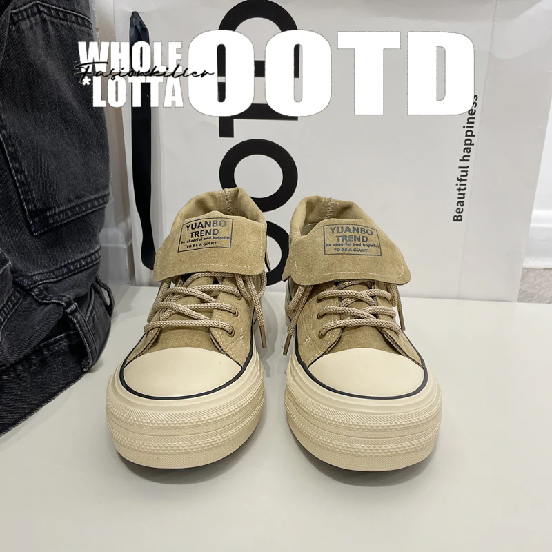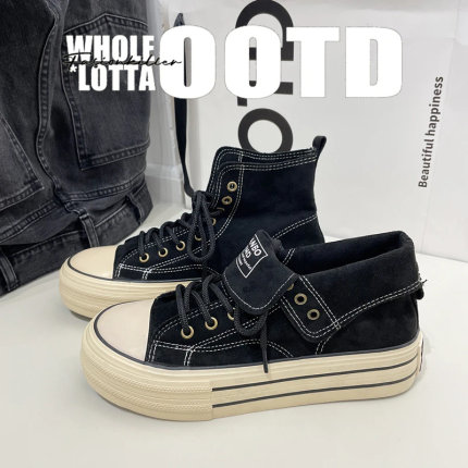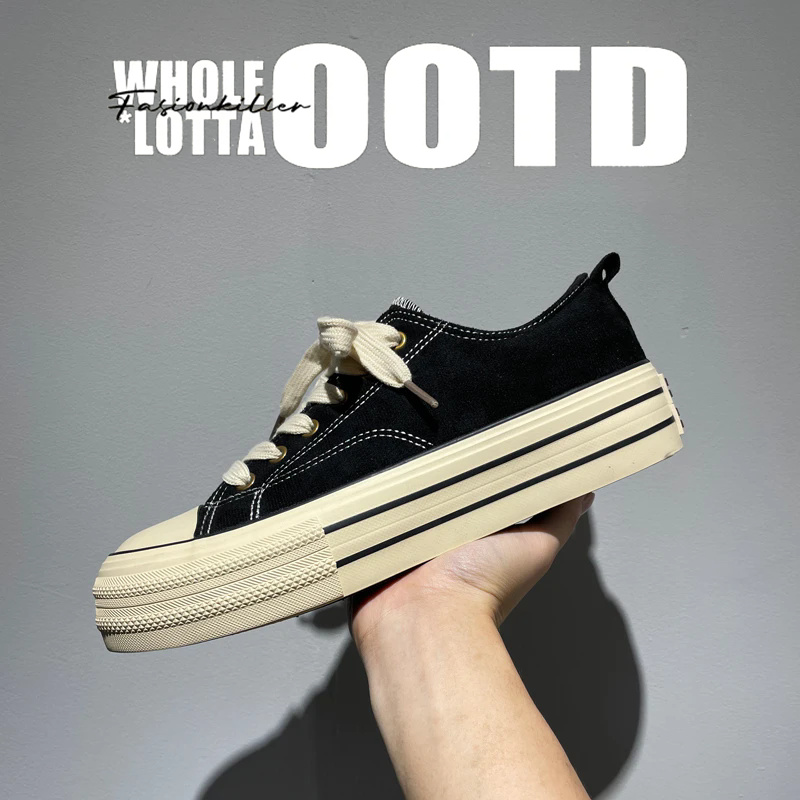 NewRockStarChoppa 秋季帆布鞋男款小众运动休闲黑色中帮厚底板鞋