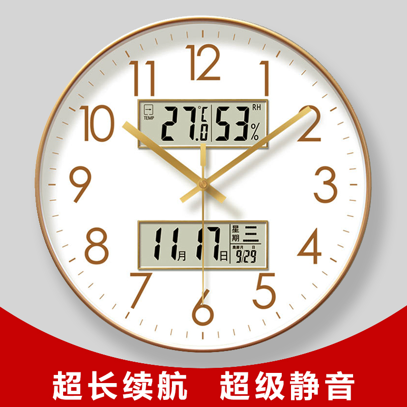 自动对时电波钟6514金色挂钟客厅经典钟表挂表静音数字时钟挂墙钟