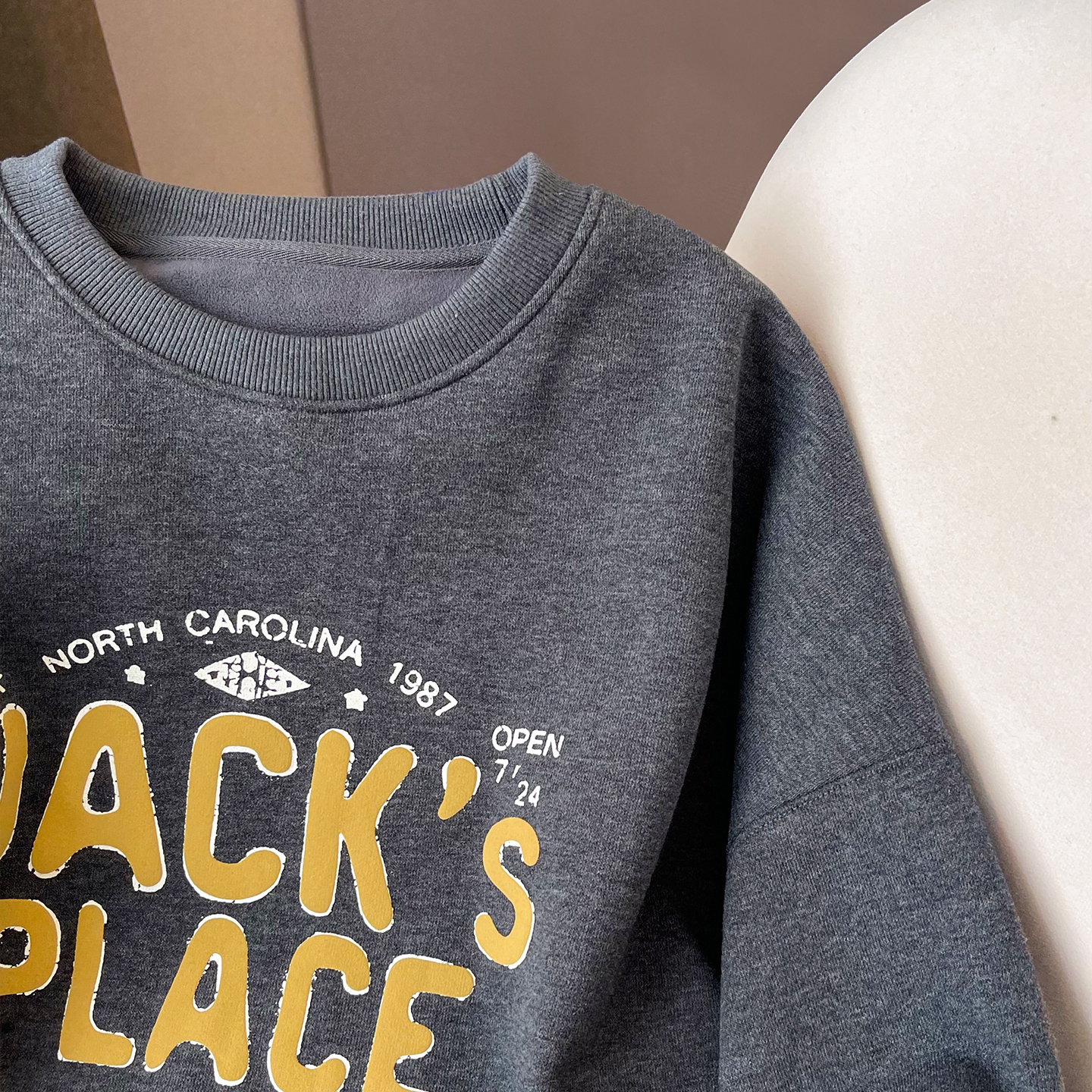 小C家 美式复古字母印花卫衣女款2025新款冬季加绒加厚高级感上衣