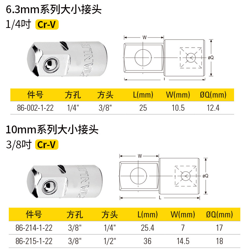 史丹利6.3mm/10/12.5/19mm系列大小接头套筒转接头转换头变头工具