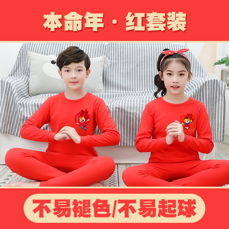 男女童保暖大红色内衣纯棉中大童本命年儿童套装12岁虎年秋衣秋裤