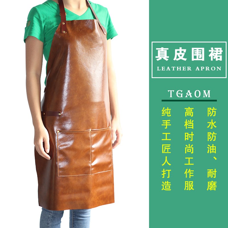 高端真皮围裙防水防油冬季家用理发咖啡师牛皮木工围腰定做印logo