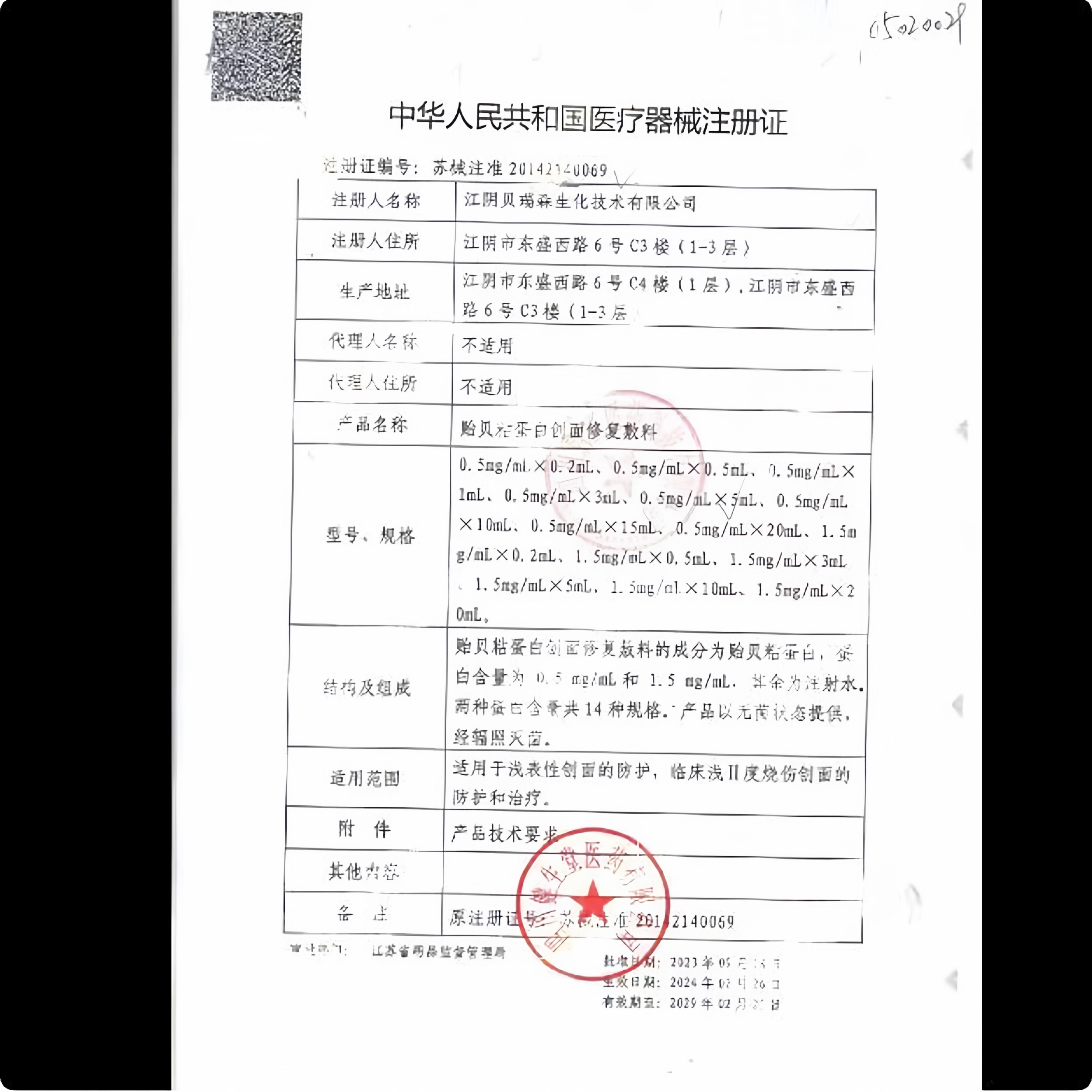 优贝瑞康贻贝粘蛋白创面修复敷料5ml浅表性创面防护烧伤治疗VX