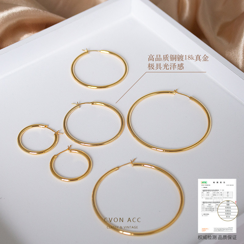 CVON耳圈素圈耳环女高级感轻奢法式气质金色小圆圈耳扣大圈圈耳饰