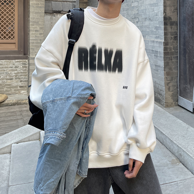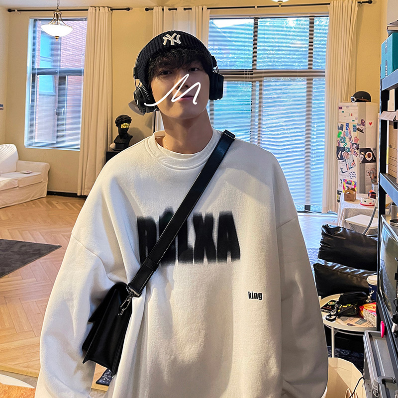 潮牌模糊感字母印花圆领卫衣男ins潮春季宽松百搭无帽长袖打底衫