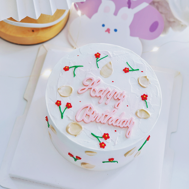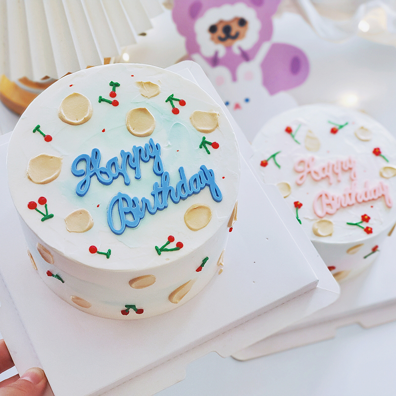 网红蛋糕装饰插牌粉蓝英文字母HappyBirthday生日快乐软胶摆件