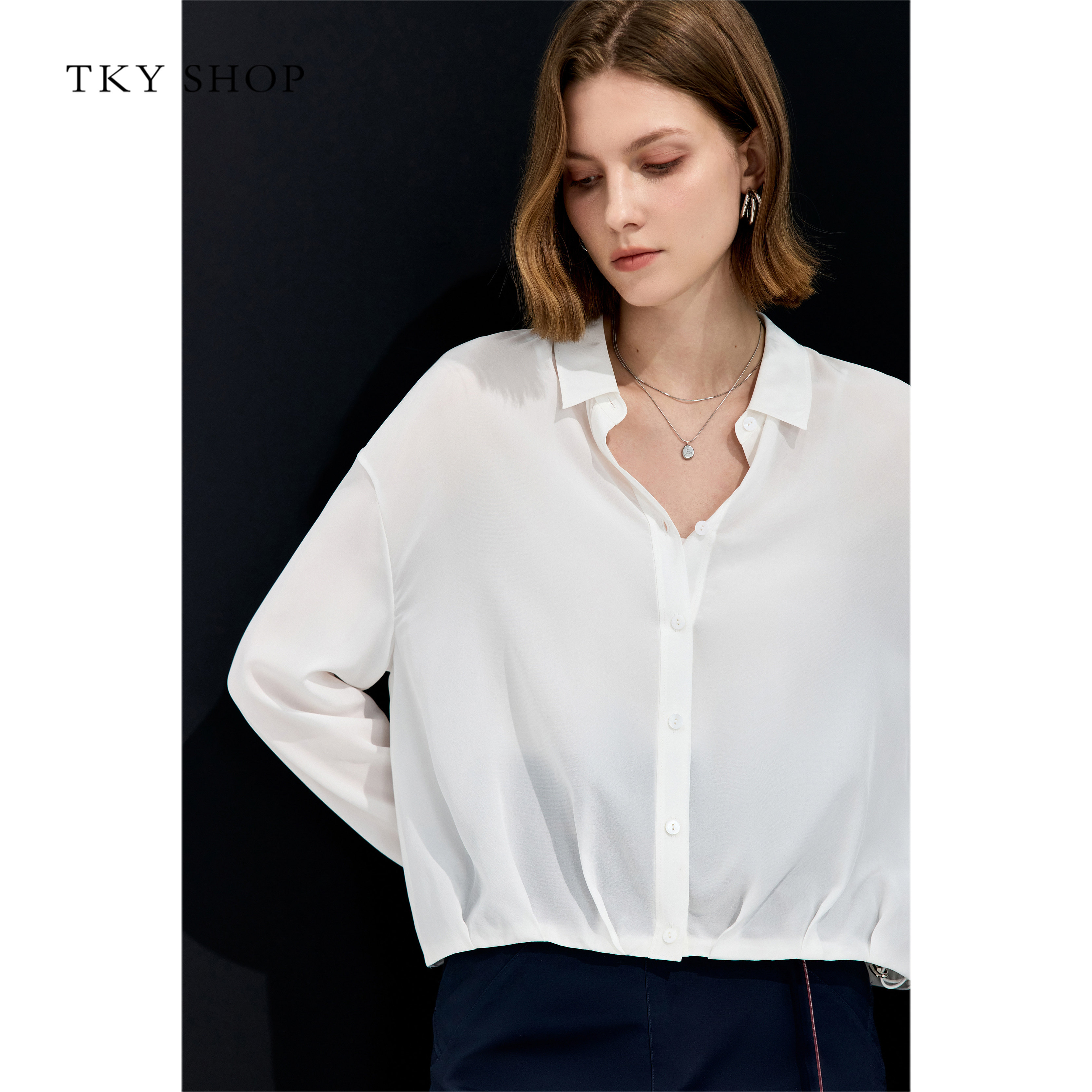 TKYSHOP短款真丝上衣