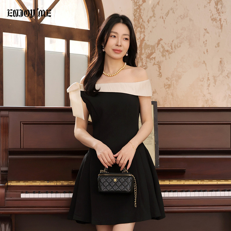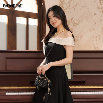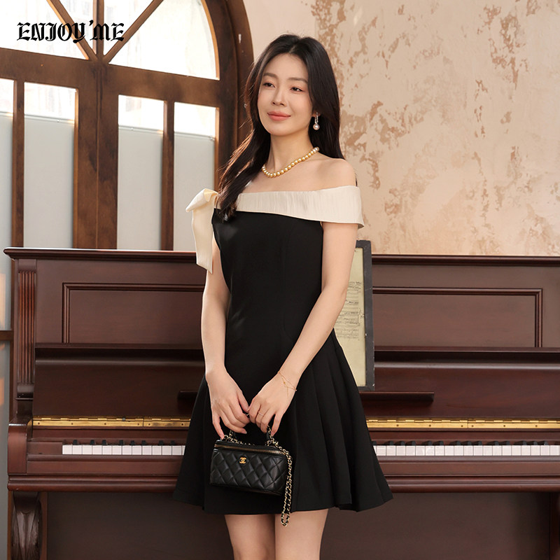 ENJOYME商场同款法式斜肩小黑裙