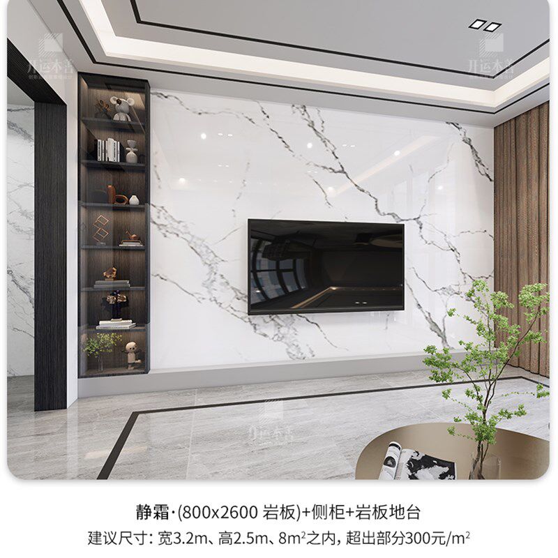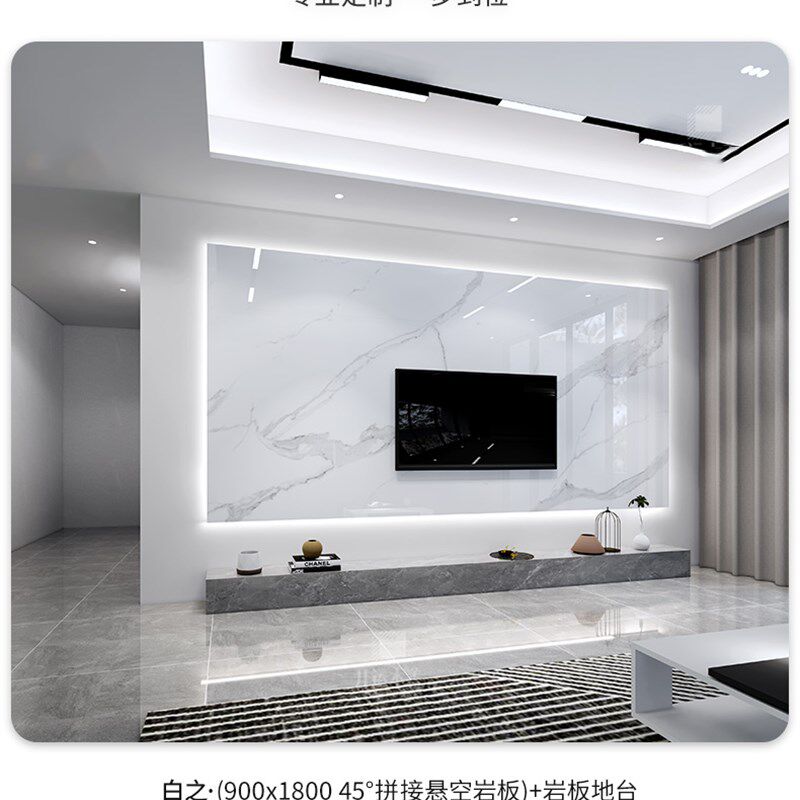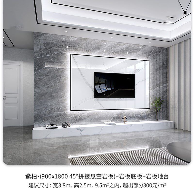岩板悬空实木格栅电视背景墙大理石瓷砖现代简约客厅影视墙