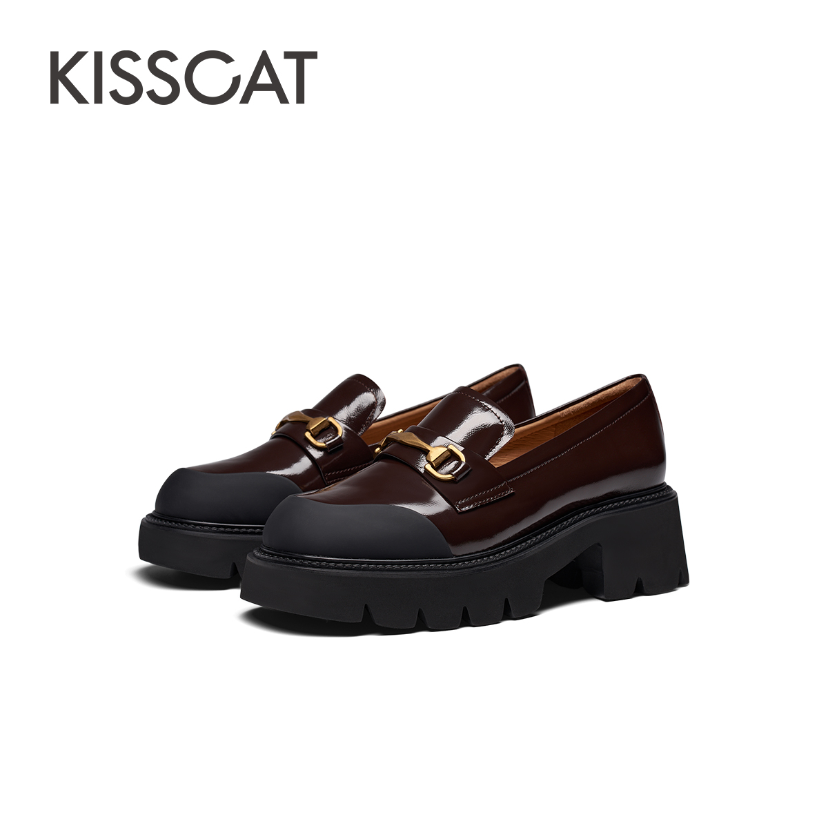 KISSCAT接吻猫厚底粗跟乐福鞋女