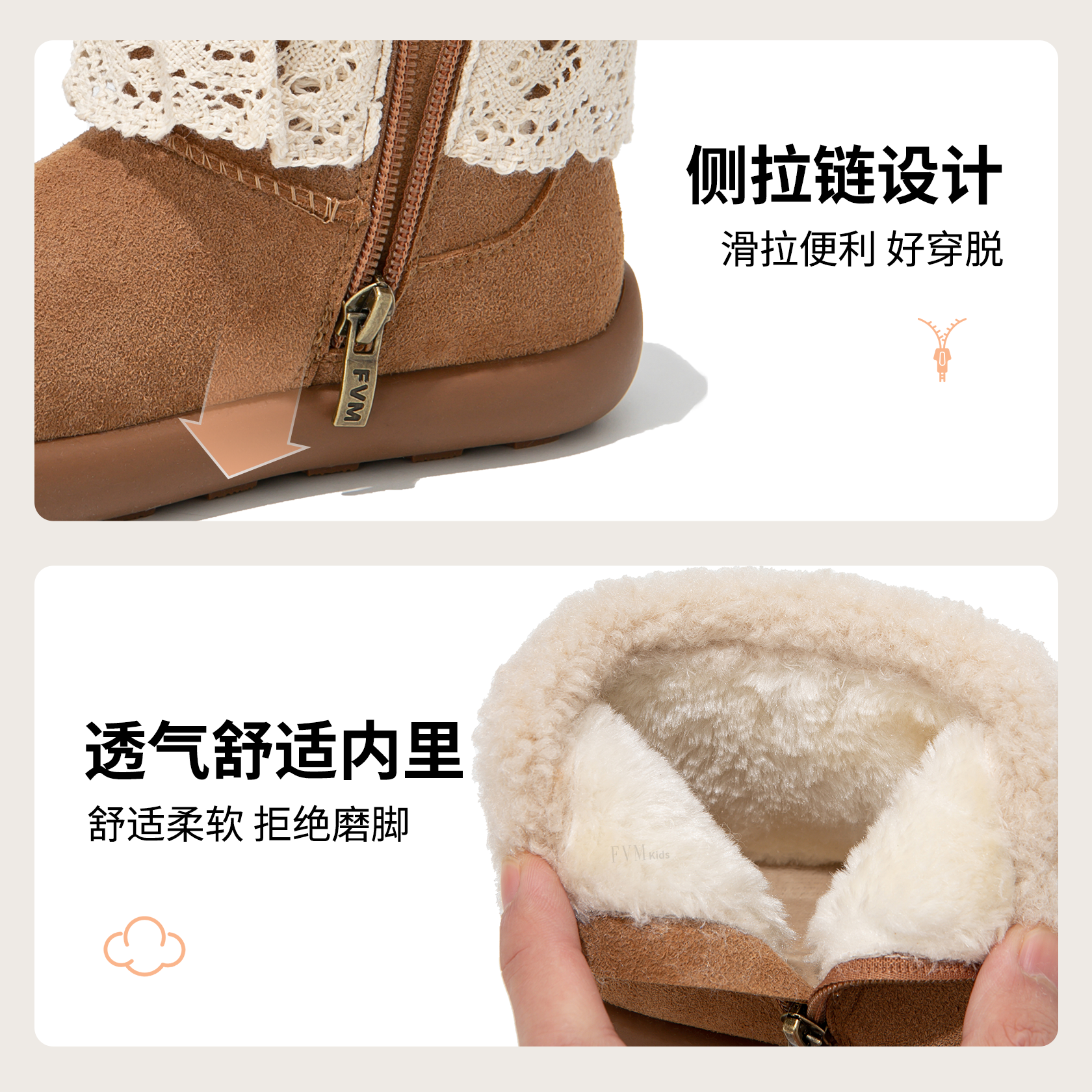 FVM女童雪地靴儿童大棉鞋2025新款冬季大童保暖短靴加绒加厚冬鞋