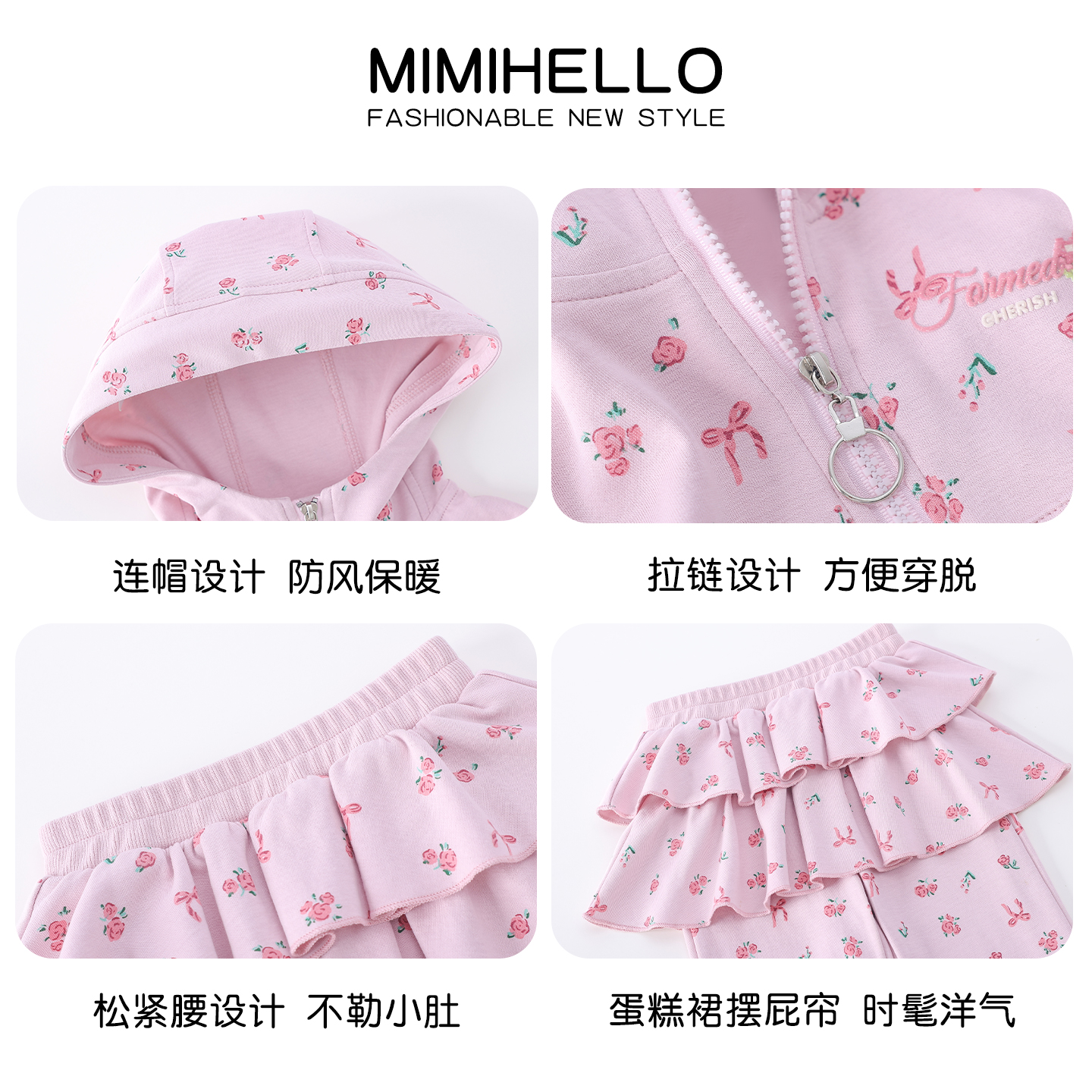 女童套装秋装2025新款儿童韩版碎花连帽外套裙裤喇叭裤两件套女孩