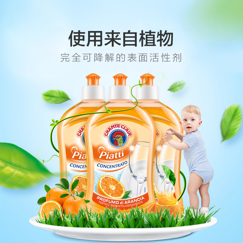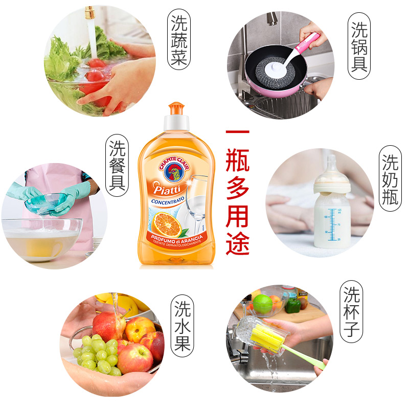意大利大公鸡管家洗洁精香橙柠檬石榴香型家用厨房清洁剂500ml