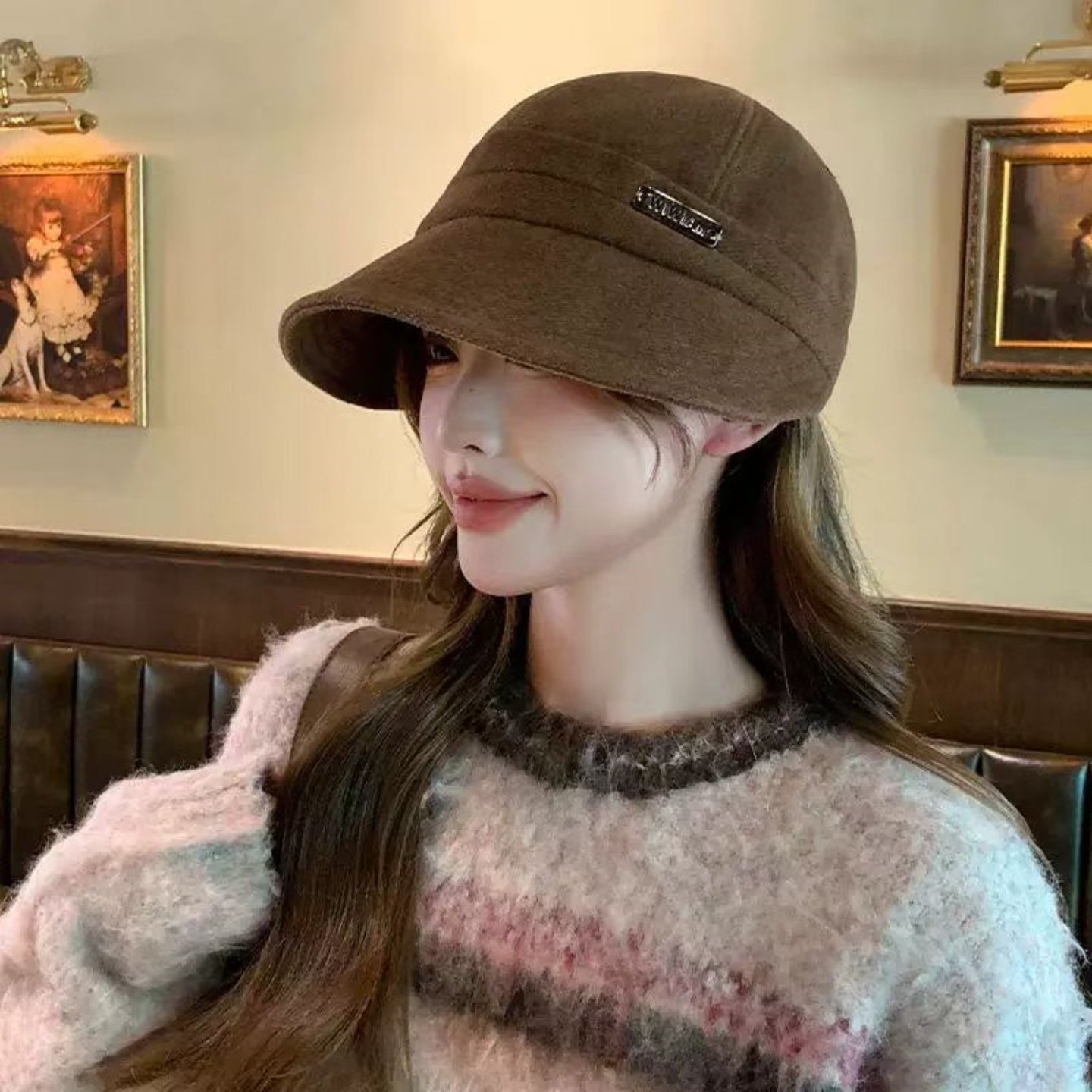 赫本风黑色鸭舌帽女加大加深大帽檐渔夫帽秋冬显脸小百搭马术帽