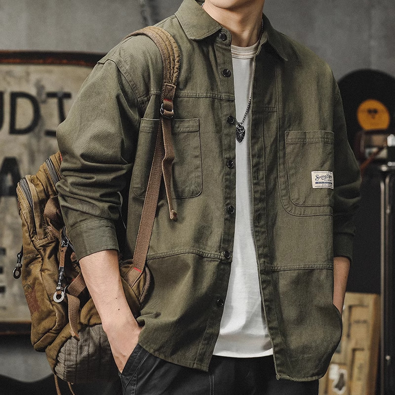 大码300斤美式工装衬衫式夹克外套男秋冬季宽松复古休闲长袖衬衣2