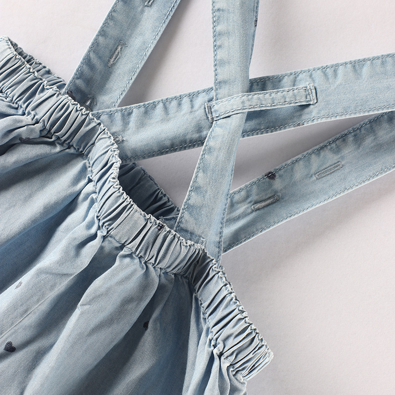 B内销夏款童装 女童后松紧腰黑爱心背带宽松阔腿短裤 D1