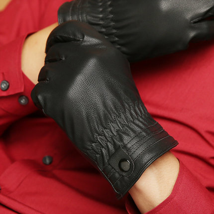 男士薄款户外加绒摩托车皮手套