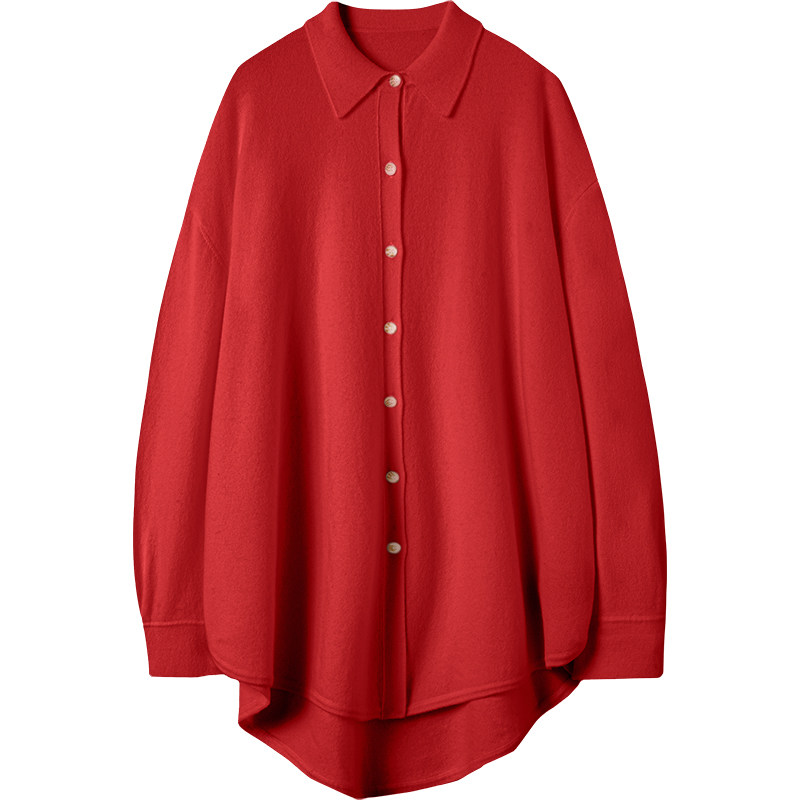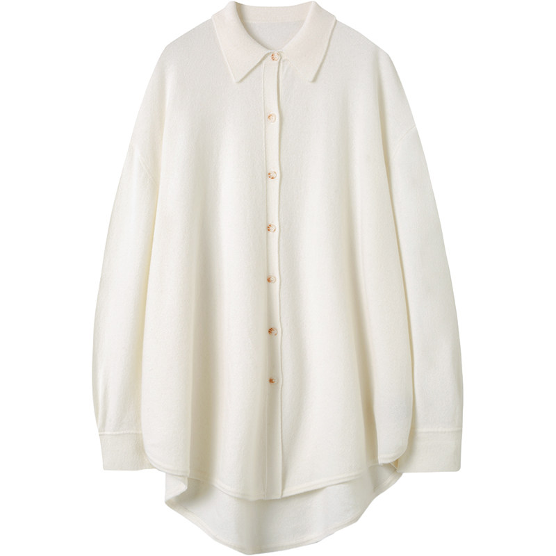 敲多色!美~廓形衬衫羊绒衫女中长款开衫POLO领纯羊绒毛衣宽松