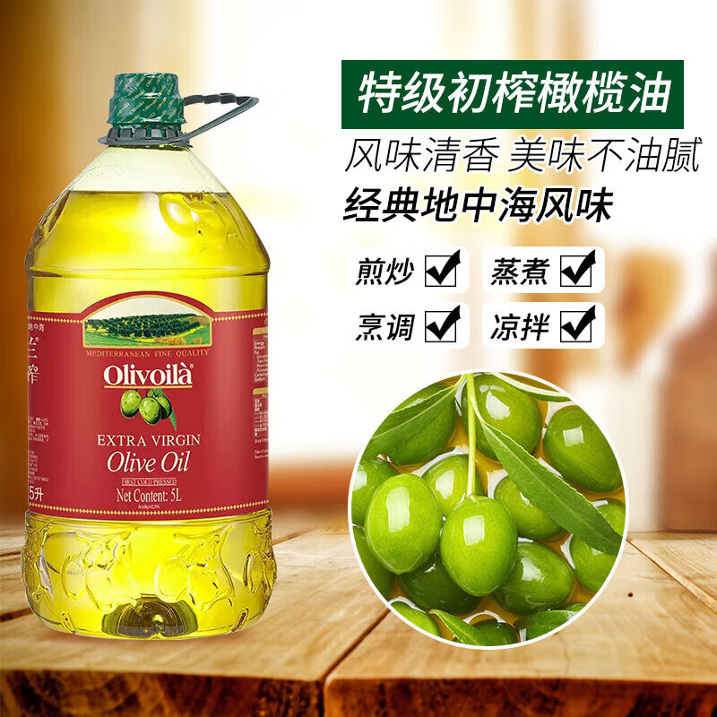 欧丽薇兰特级初榨橄榄油5L物理压榨食用油营养健康烹饪大桶凉拌
