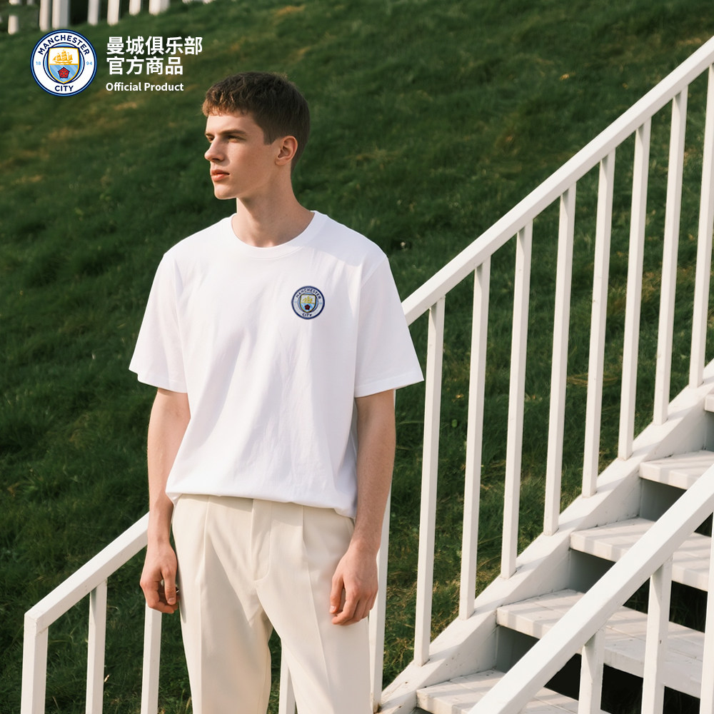 【官方正版】曼城俱乐部 | 夏季新款白色休闲T恤清爽透气基础款