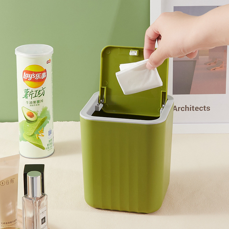 桌面垃圾桶书桌卧室床头收纳桶迷你宿舍带盖按压弹盖式小号纸篓